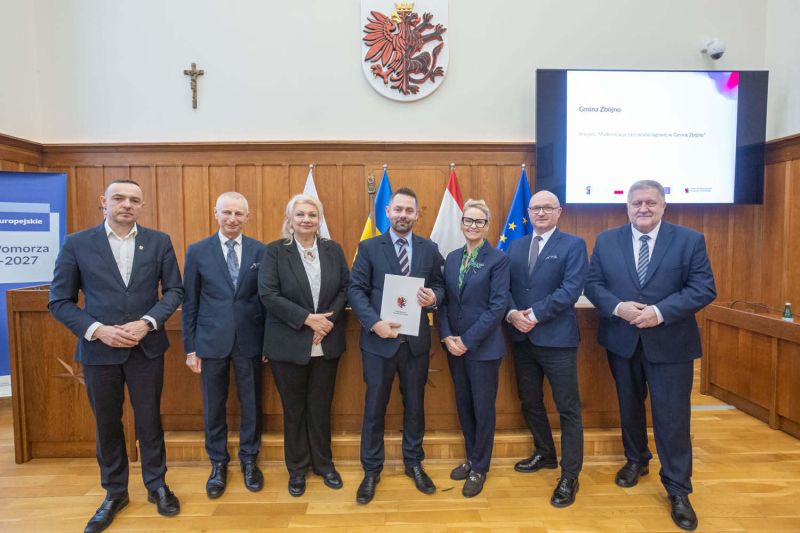 W dniu 14 stycznia 2026 r. w siedzibie Urzędu Marszałkowskiego w Toruniu odbyło się uroczyste wręczenie umów o finansowanie projektów ze środków Funduszy Europejskich dla Kujaw i Pomorza 2021-2027. Pan Artur Dymek, Zastępca Wójta Gminy Zbójno odebrał w imieniu Gminy Zbójno umowę o dofinansowanie projektu pn. „Modernizacja sieci wodociągowej w Gminie Zbójno”.